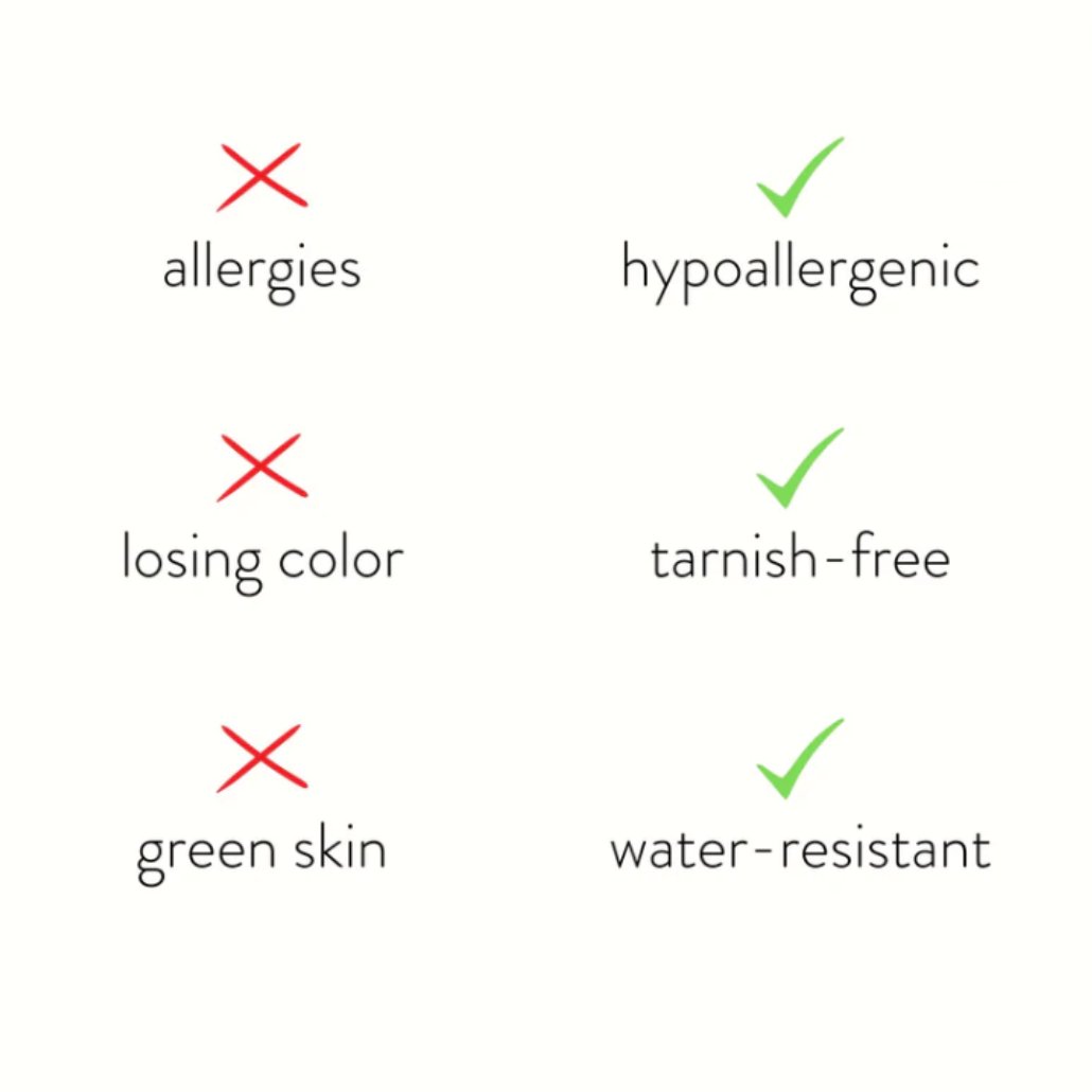 Hergestellt aus wasserdichtem Edelstahl, müssen Sie sich nie wieder Sorgen machen, dass Schmuck verblasst oder anläuft.