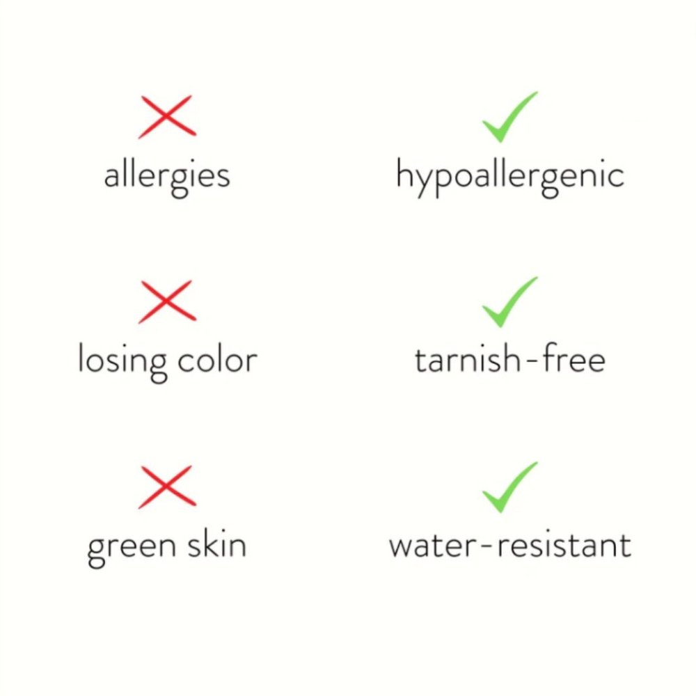 Made from waterproof stainless steel, you will never have to worry about green fingers, fading, or tarnish-free jewelry again.